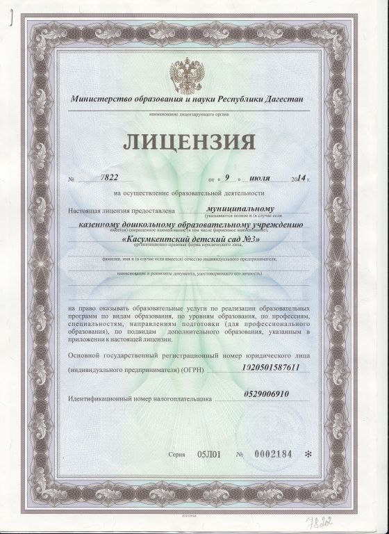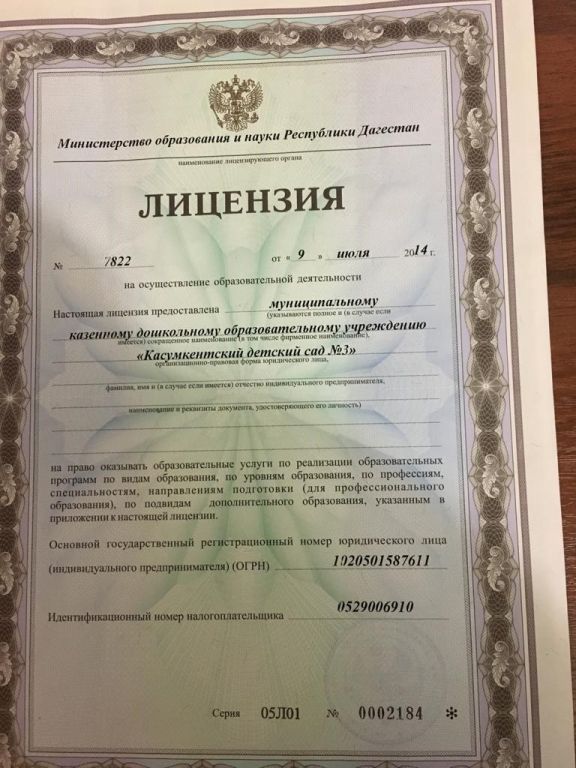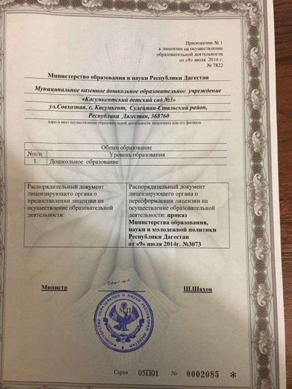 | Полное наименование образовательной организации* | Муниципальное казенное дошкольное образовательное учреждение "Касумкентский детский сад №3" |